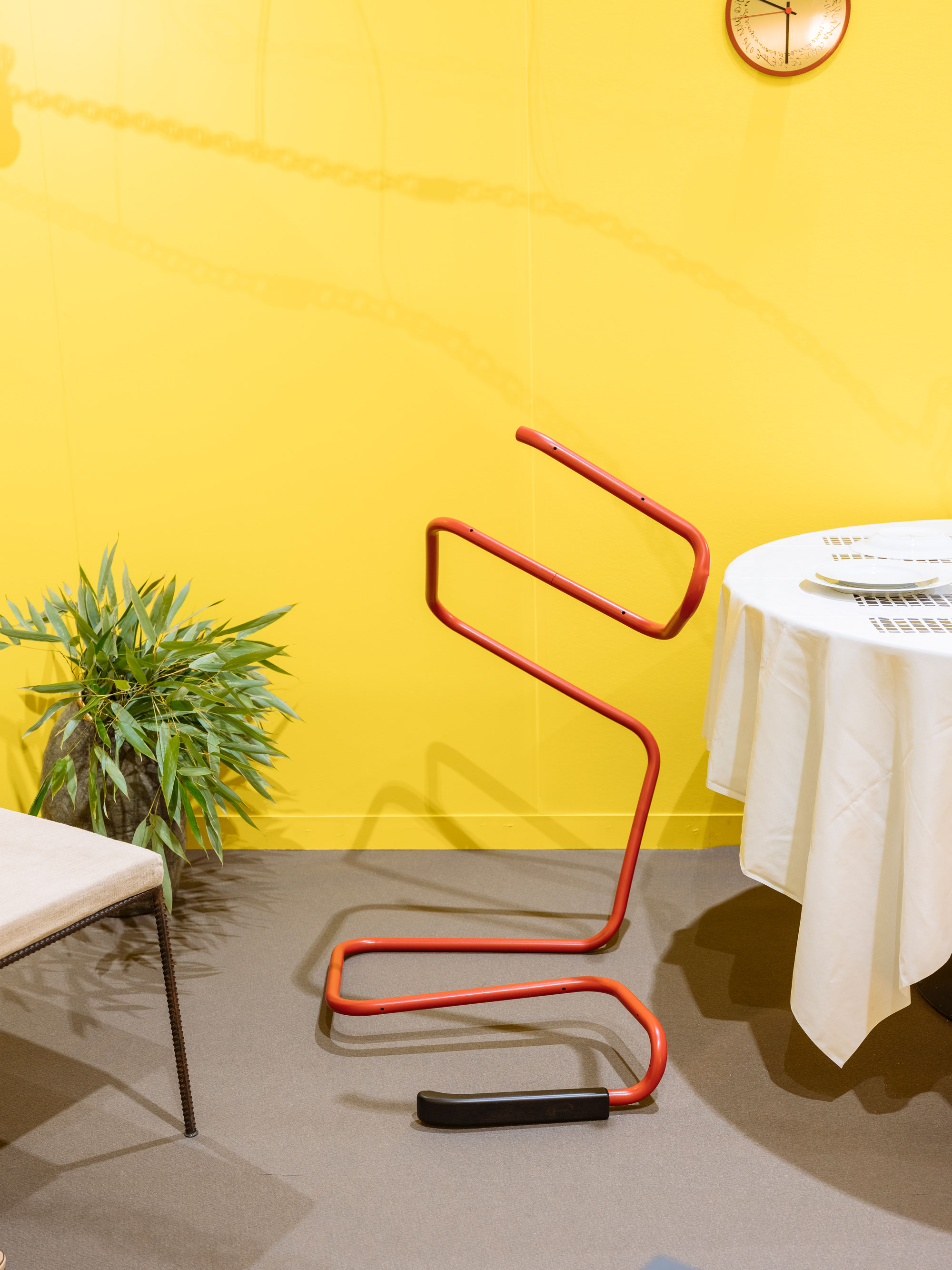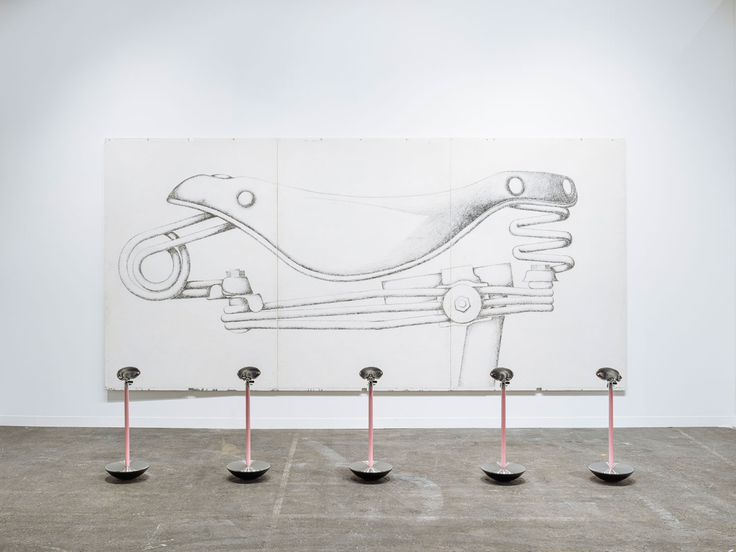 Stand B54 verdichtete das Konzept mit Alfred Hofkunsts Zeichnung «Bike Saddle» (1975) und den «Selle»-Hockern von den Castiglioni-Brüdern.